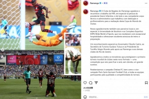 弗拉门戈俱乐部官方社媒也在决赛结束后第一时间发文:“弗拉门戈俱乐部感谢并认可国际足联的工作,尤其是主席因凡蒂诺及其全体高水平的技术和行政团队,他们以奉献精神和专业素质为举办本届世俱杯付出了辛勤的努力。”