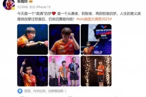 体育资讯7月14日讯 朱雨玲更新社媒,庆祝自己拿到WTT美国大满贯女单冠军。