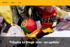 体育资讯7月14日讯 狼队官网表示,在过去的一周里,莫利诺克斯球场外成为了对若塔及其弟弟安德烈的感人纪念场所,俱乐部对所有前来悼念并留下寄语、球衣、围巾和鲜花的人表示衷心感谢。