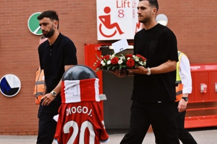 体育资讯07月14日讯 利物浦官方消息,B费、达洛特和阿莫林代表曼联,来到安菲尔德悼念若塔兄弟。