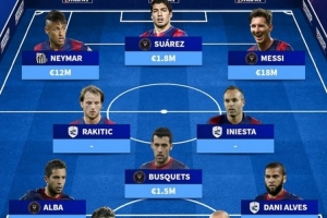 德转列巴萨2015欧冠决赛首发当前情况:身价(欧元)